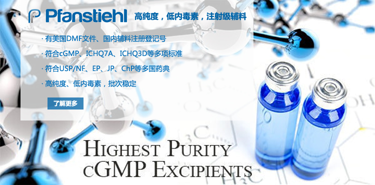 “熱烈祝賀Pfanstiehl的注射級甘氨酸Glycine(G-140)喜獲CDE登記號F20250000403, 這是Pfanstiehl產品獲得的第18個CDE登記號!”甘氨酸在醫藥輔料制劑中應用廣泛,, 可作為緩沖劑,增溶劑,穩定劑等,具有諸多優勢。Pfanstiehl秉承一貫高品質理念,為滿足全球生物制藥行業對于高品質甘氨酸的需求,隆重推出的注射級甘氨酸Glycine (G-140), 具有超高純度,超低內毒素,超低金屬殘留的特點,單獨檢測29種金屬離子,并且新增DNA,RNA,DNA酶,RNA酶和脂肪酶,亞硝酸鹽等多項質量指標的檢測,符合多國藥典規定(USP, EP, BP, JPE, ChP),可用于生物治療性藥物和疫苗的生產。產品信息:· 產品名稱:Glycine, High Purity, Low Endotoxin, Low Metals, USP, EP, BP, JPE, ChP (G-140)· 中文名稱:甘氨酸· 分子式:C2H5NO2· 分子量:75.07 g / mol· CAS號:56-40-6· 產品貨號:G-140產品特點: · 超高純度,超低內毒素,超低微生物含量,超低金屬雜質殘留· 質量指標新增DNA,RNA,DNA酶,RNA酶,脂肪酶和亞硝酸鹽檢測· 符合多國藥典:USP, EP, BP, JPE, ChP· 符合ICH Q3D標準· 符合GMP標準· 已獲DMF和CDE登記號 產品應用:· 緩沖劑· 穩定劑· 增溶劑如果您對Pfanstiehl注射級別Glycine G-140感興趣,歡迎聯系Pfanstiehl 中國區代理商北京西美杰科技有限公司獲得如下詳細的產品概況說明文件和測試樣品。Pfanstiehl Inc.最新產品系列如下,歡迎聯系北京西美杰科技有限公司獲取100g裝免費樣品。北京西美杰科技有限公司為Pfanstiehl中國代理,為客戶提供完善的技術支持與售后服務。歡迎撥打西美杰客服電話400-050-4006或者登陸網站www_xmjsci_com.akvbwn.pro了解更多信息。 更多>西美杰介紹